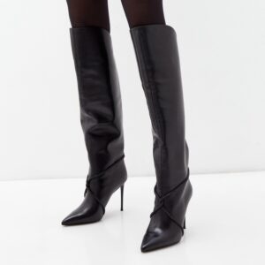 Pantofi Stiletto eleganti , piele naturala, negru sidefat(auriu) cu accesoriu