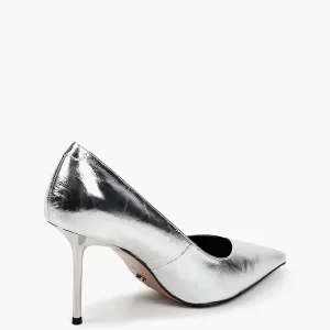 Pantofi Stiletto eleganti , piele naturala, argintii