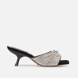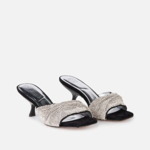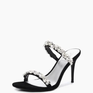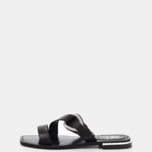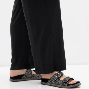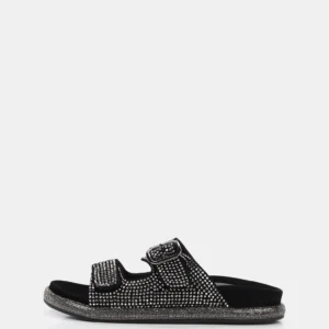 Sabot dama eleganti , piele intoarsa , accesorii pietre , negri