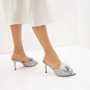 Saboti dama, piele intoarsa accesorizata cu pietre