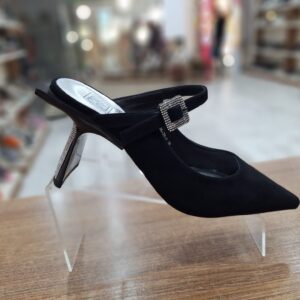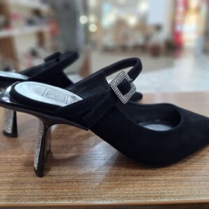 Saboti negri, piele intoarsa, bareta decorata cu o catarama patrata din strasuri c-497