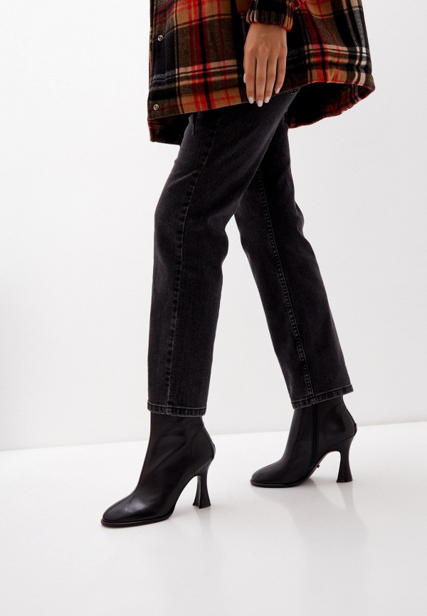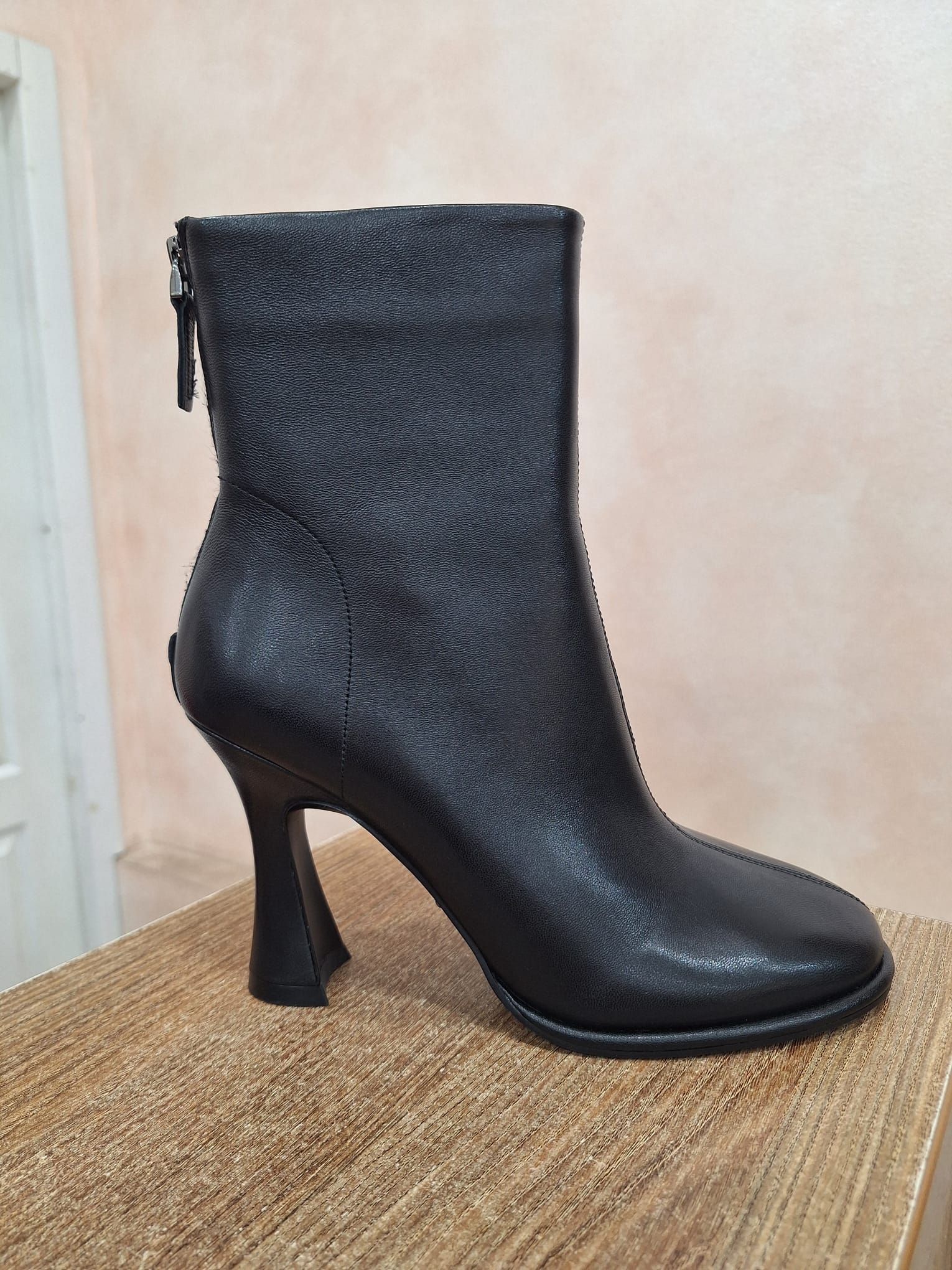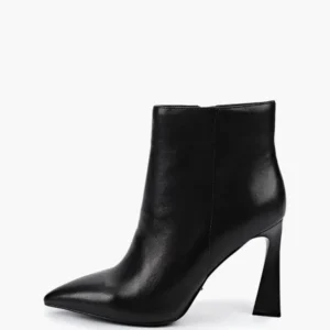 Botine negre din piele naturala, toc clepsidra