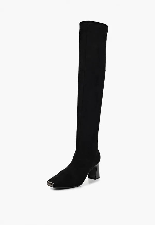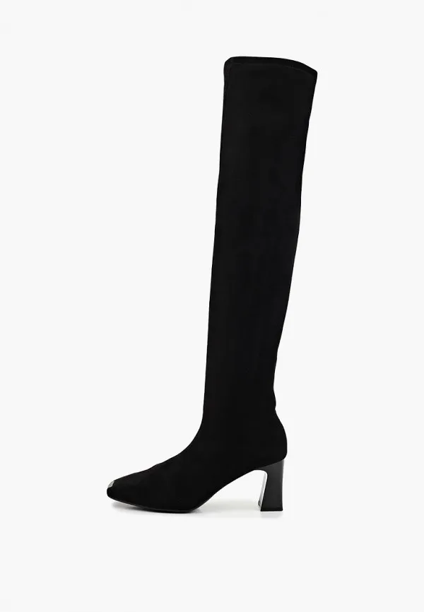 Cizme elegante cu varf metalic , piele intoarsa , negre