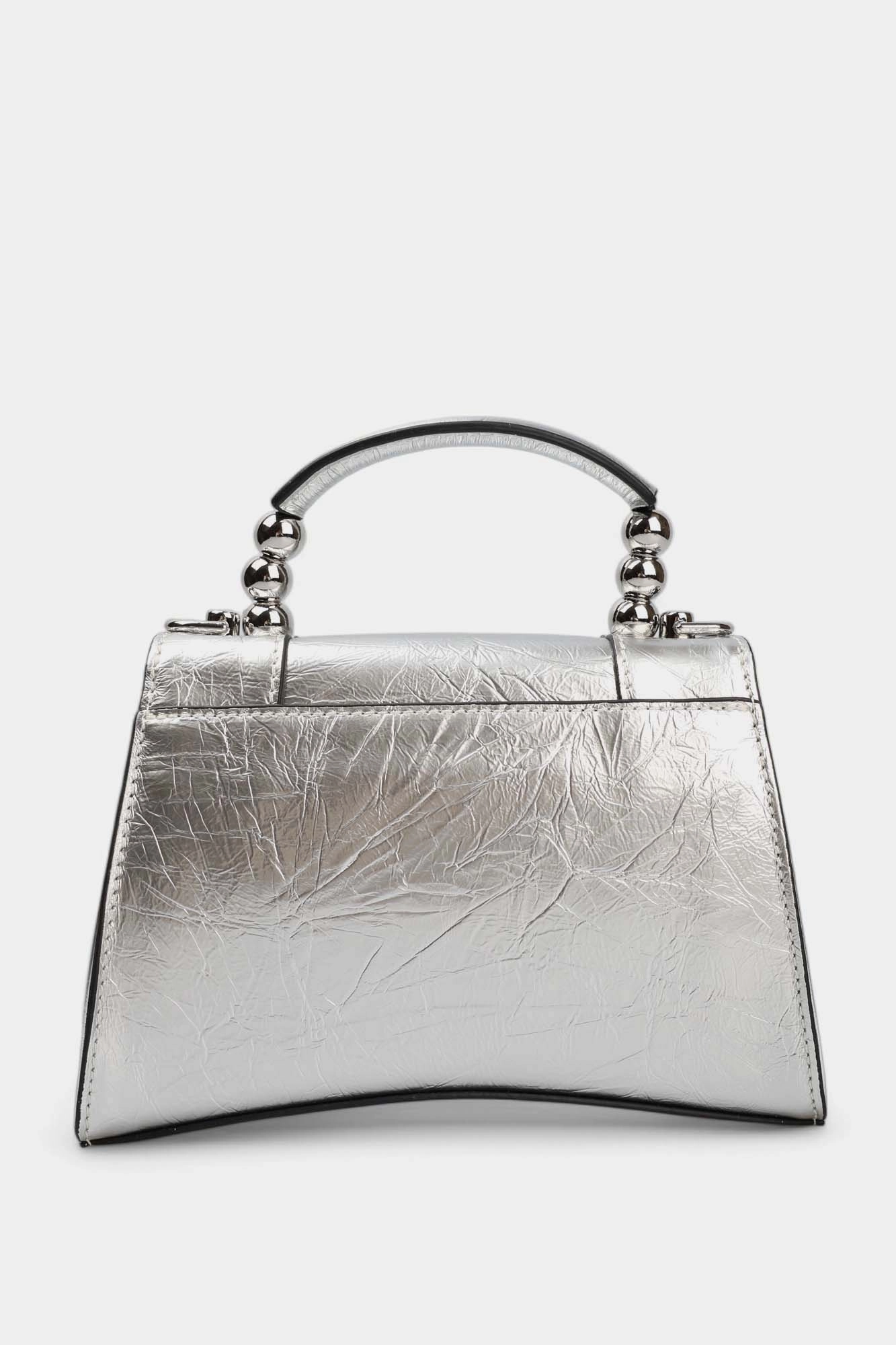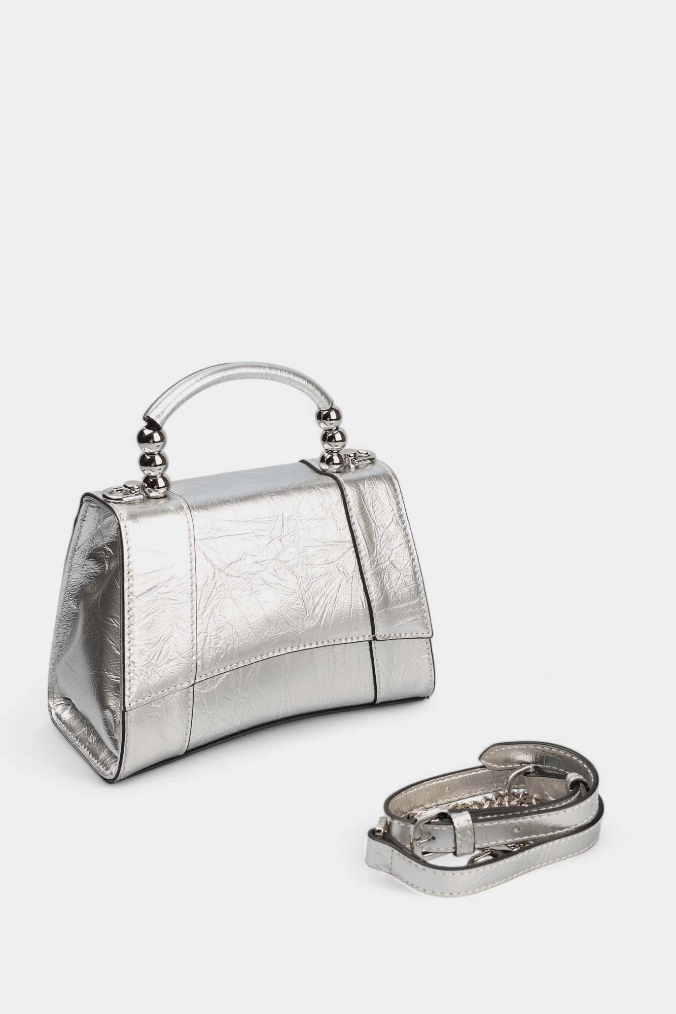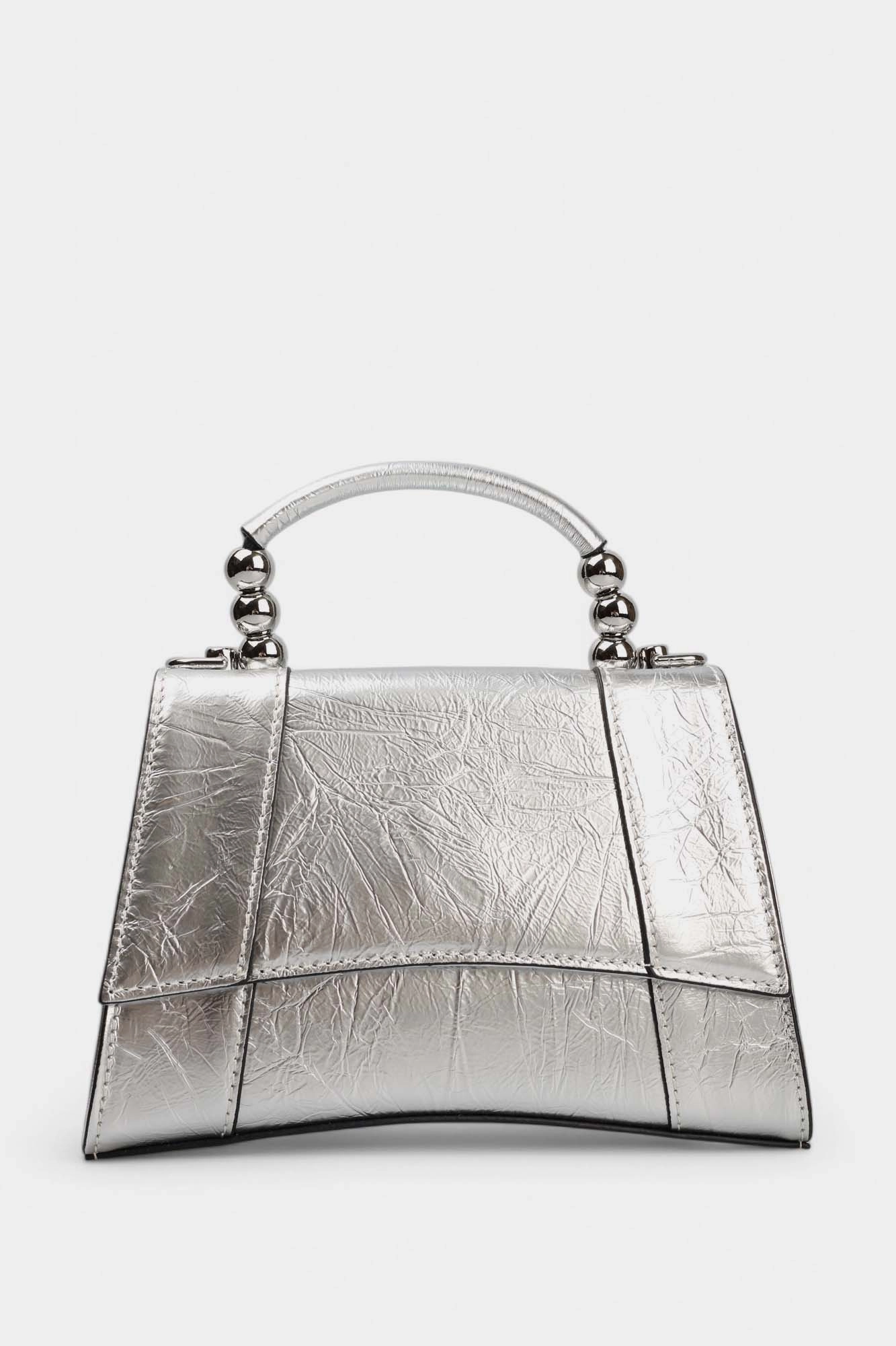 Geanta de mana eleganta,de culoare argintie cu maner rigid decorat cu bile metalice.