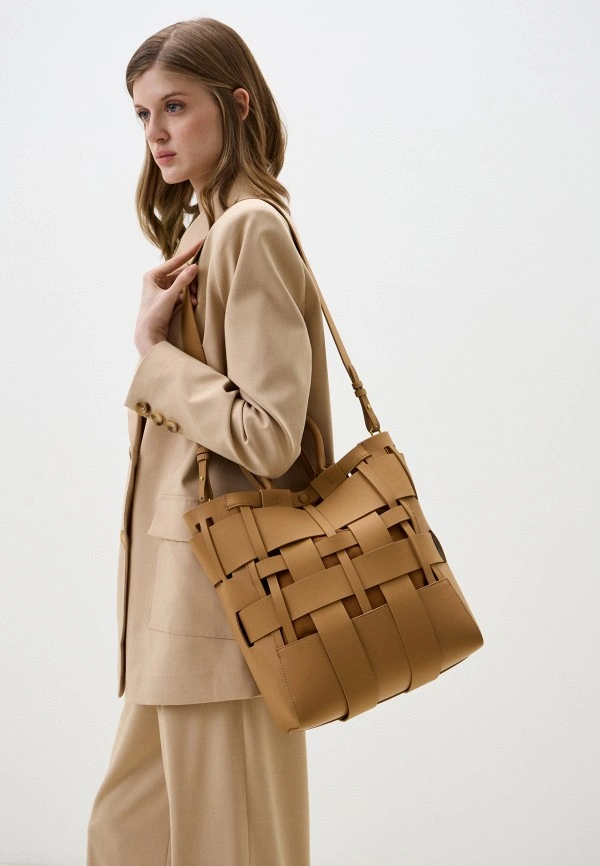 piele naturala cappuccino, saculet de depozitare, de mana si umar