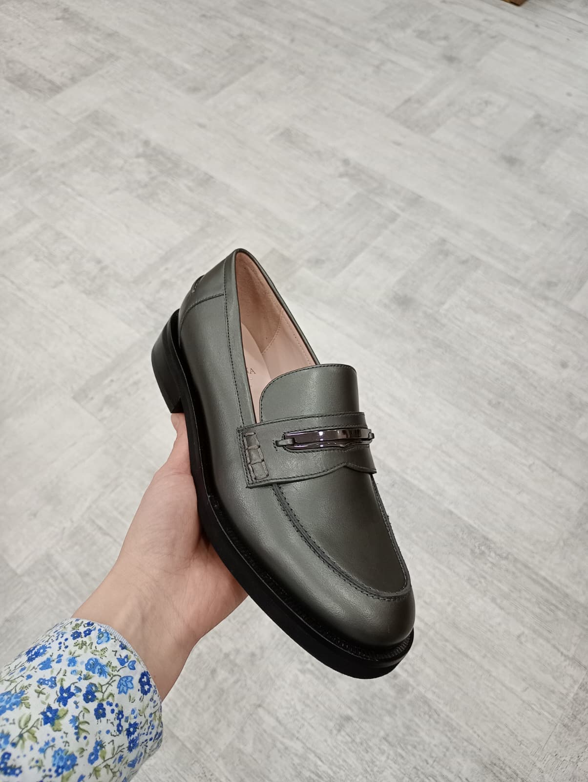 Pantofi casual din piele naturala cu detaliu metalic