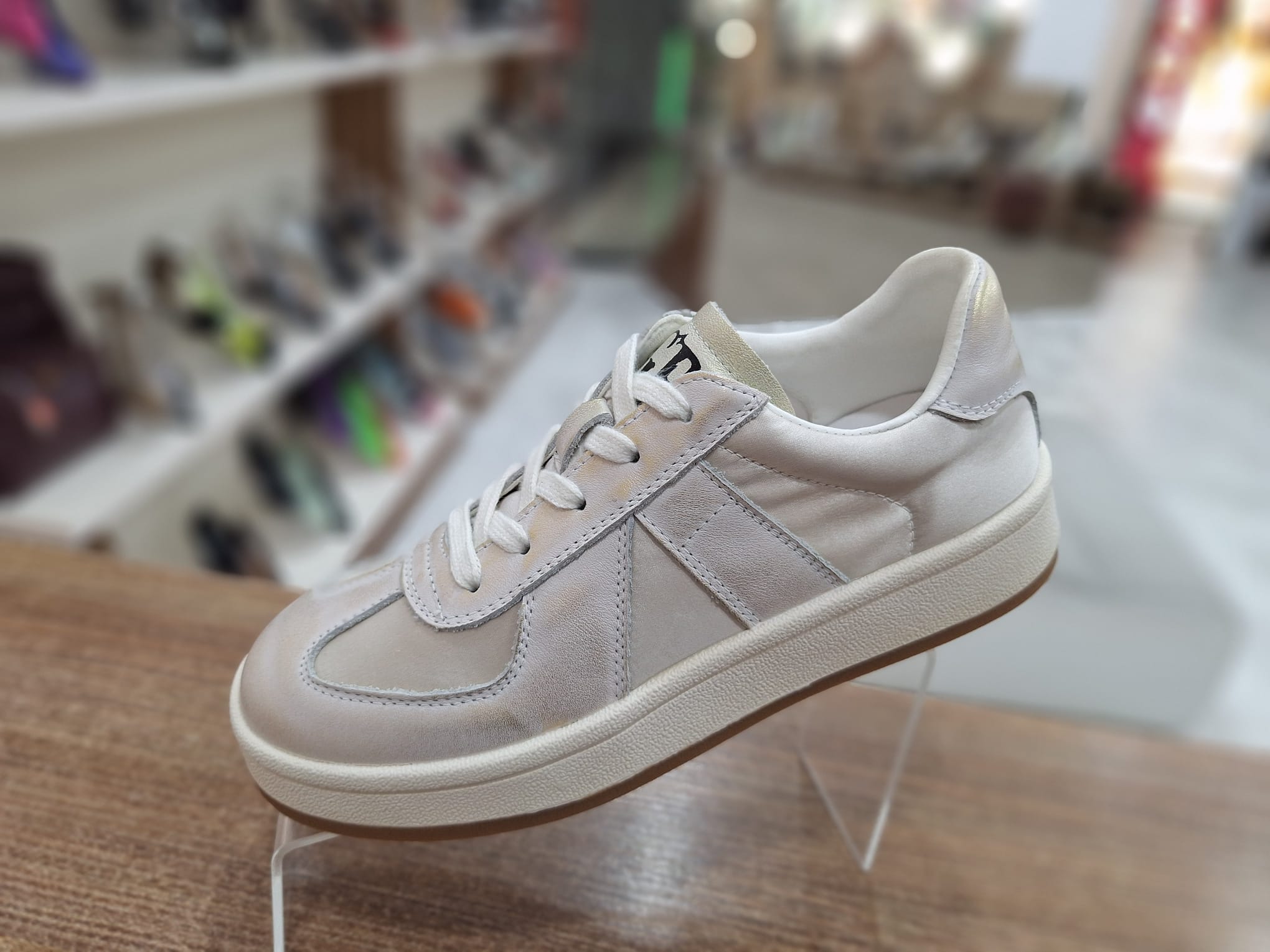 Sneakers dama , piele naturala , ivory cu dantela dublata