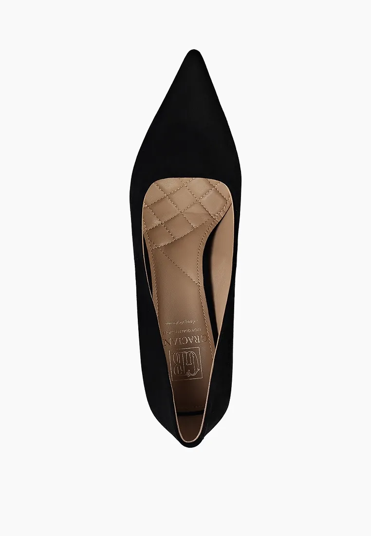 Pantofi Stiletto eleganti , piele intoarsa, cu toc auriu