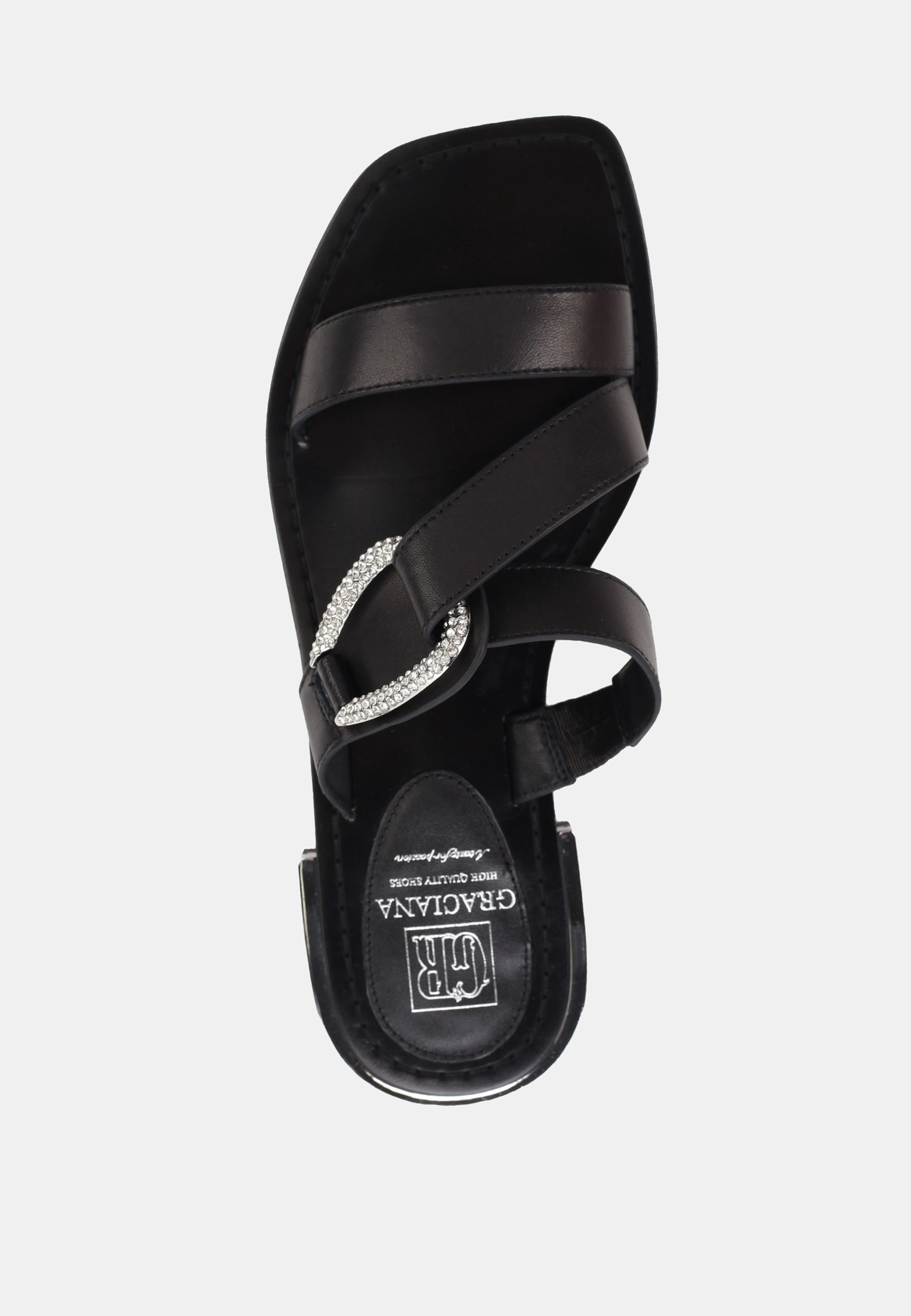 Saboti dama, piele intoarsa accesorizata cu pietre