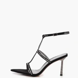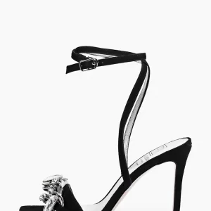 Sandale dama elegante , piele intoarsa, accesoriu pietre , negre