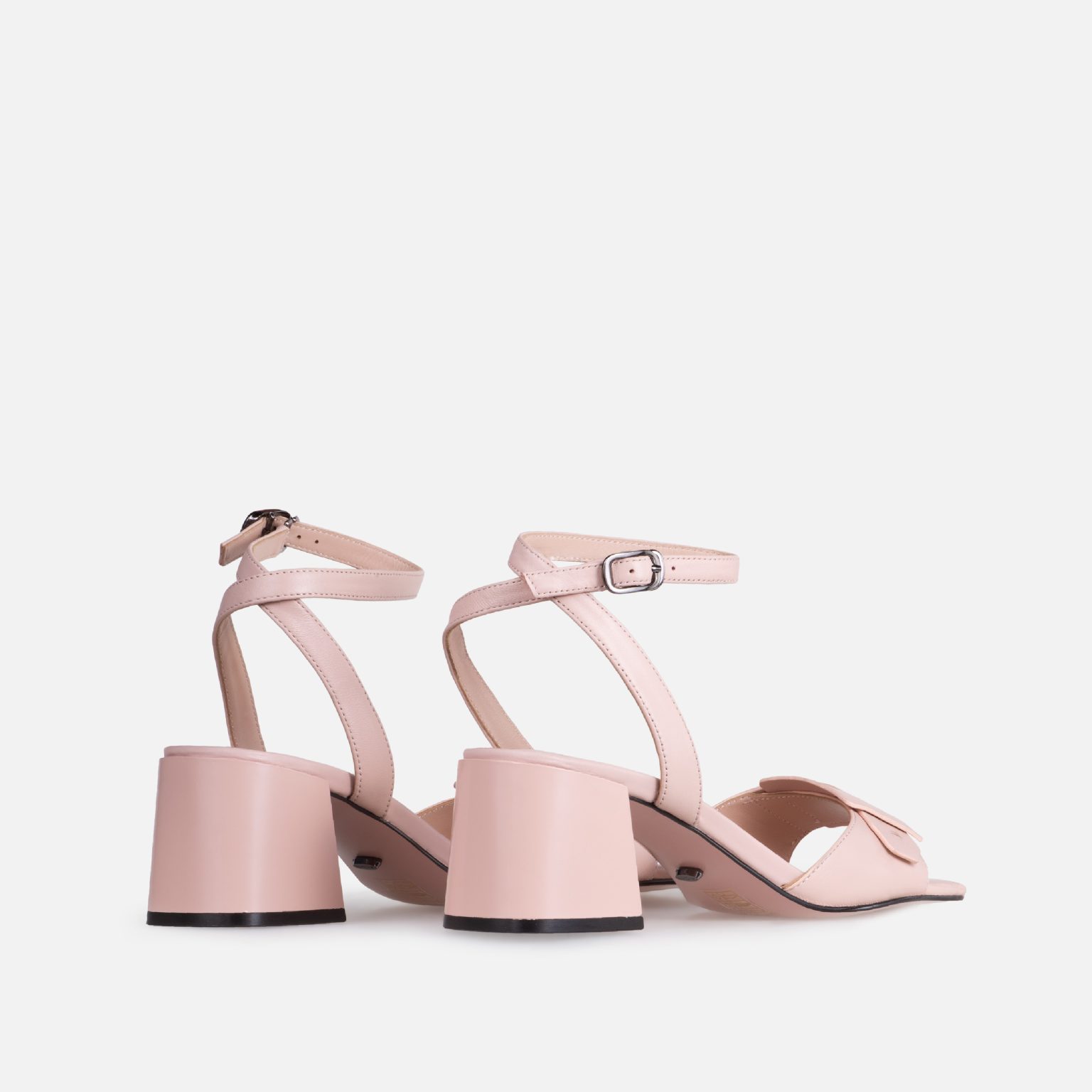 Sandale piele naturala roz prafuit, toc tip bloc, accesoriu catarama c-567
